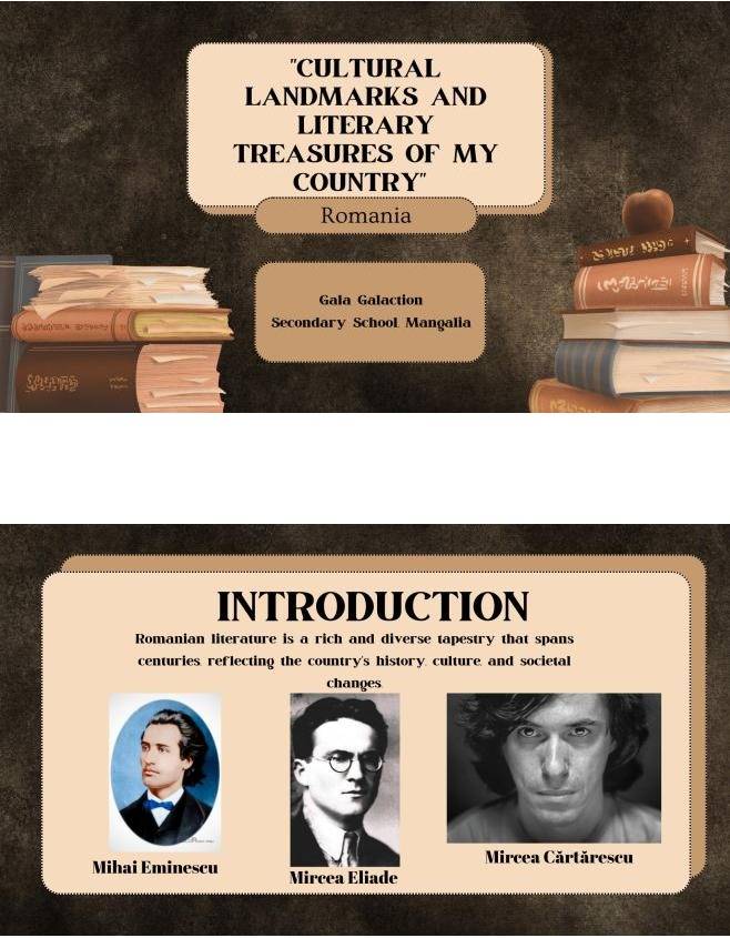 Aceștia au realizat afișe și prezentări prin care au pus în lumina simboluri naționale românești (prezentarea gastronomiei specifice, a tradițiilor specifice, a literaturii etc.).